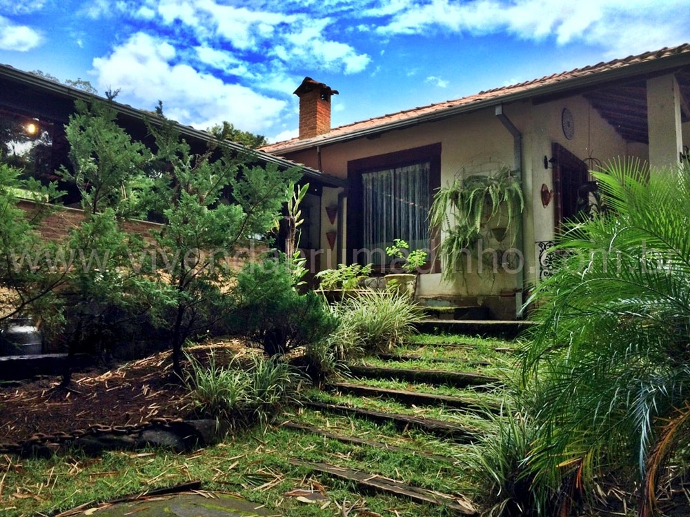 Casa a venda em Mário Campos, em estilo colonial rústico, com área construída de 147m², contendo 03 dormitórios (01 suíte), sala, cozinha, banheiro social, área de serviço e lavanderia + capela, espaço coberto com churrasqueira, piscina, lagoa, amplo quintal gramado com pomar com jabuticabeiras produzindo e outras árvores diversas.