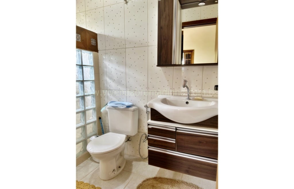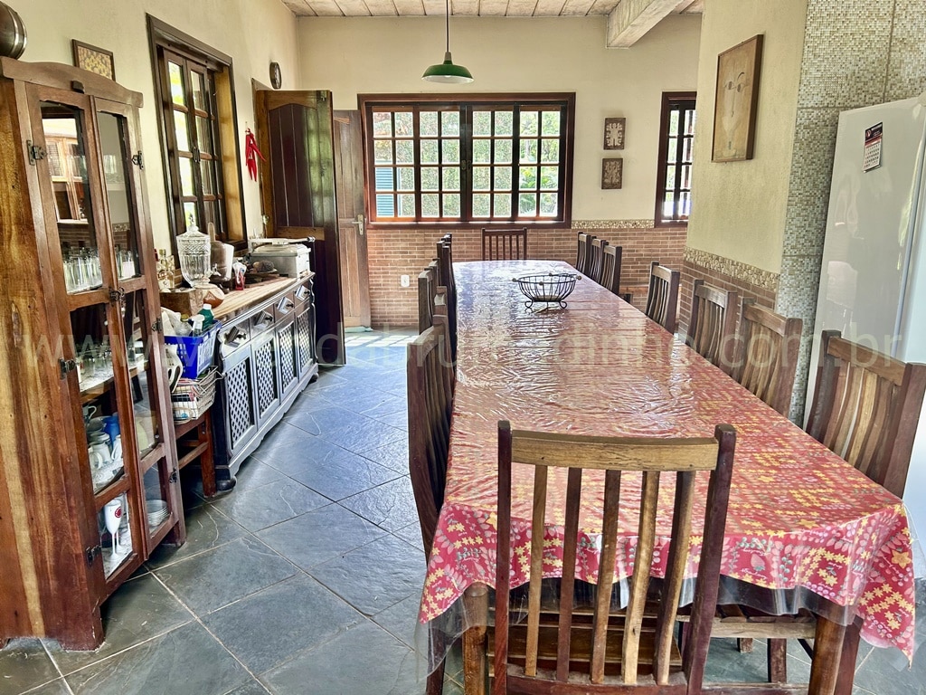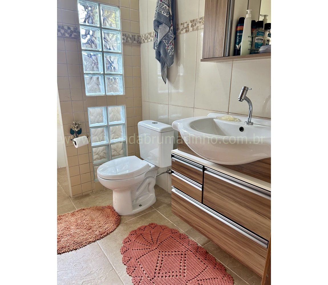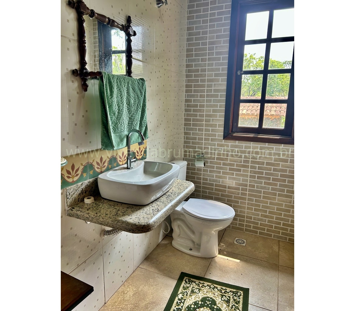 1.º Pavimento: Cozinha ampla com despensa, sala ampla, banheiro social, 04 quartos (sendo 02 suítes e 01 com armário planejado), lavanderia com forno em alvenaria, varanda colonial.