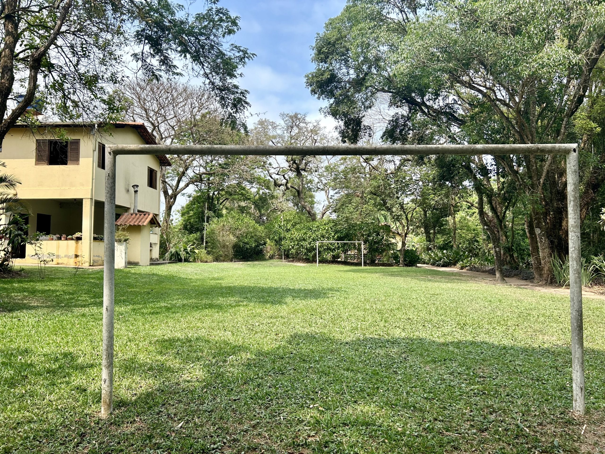 Quadra de peteca, campo de futebol gramado.
