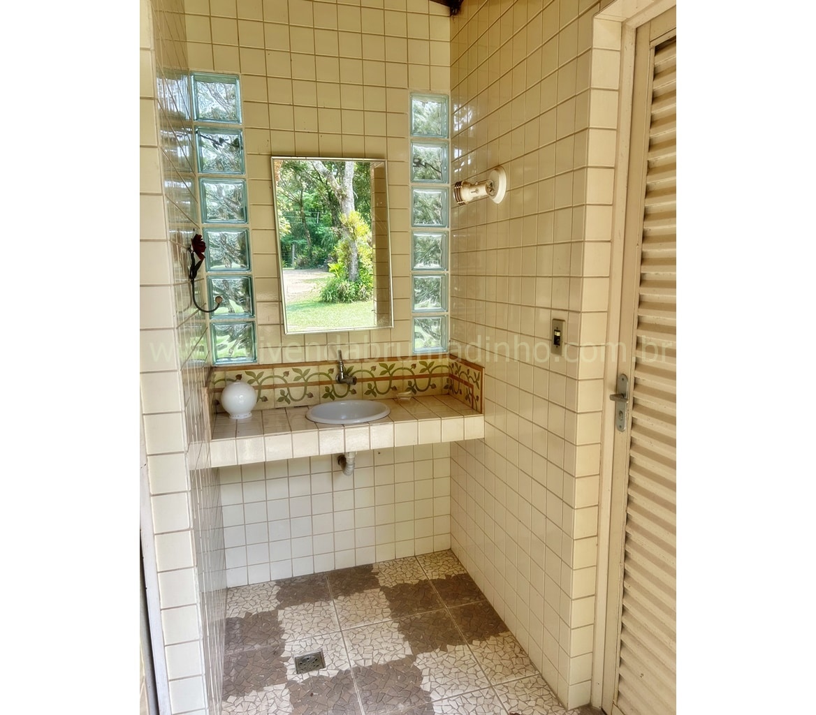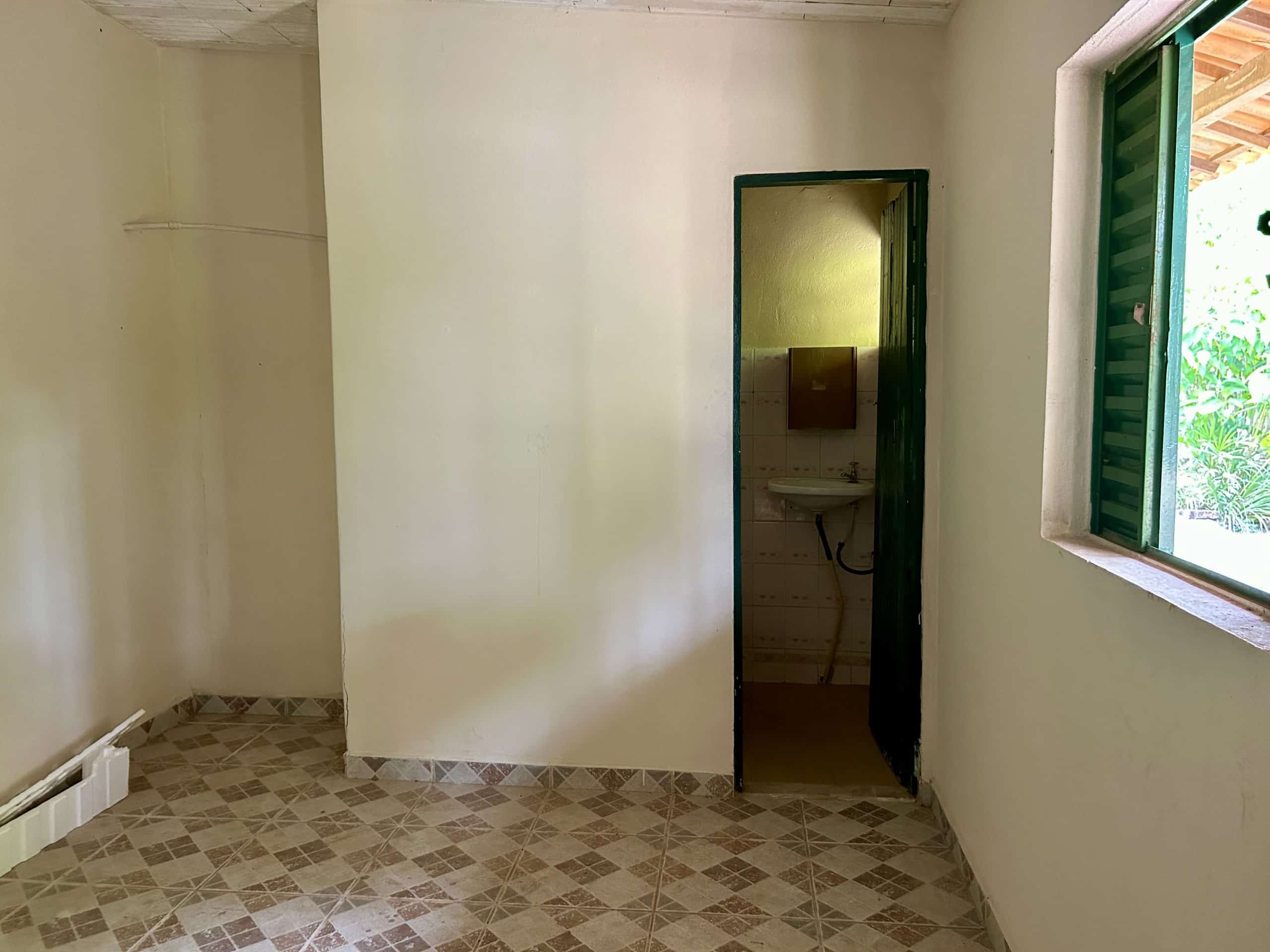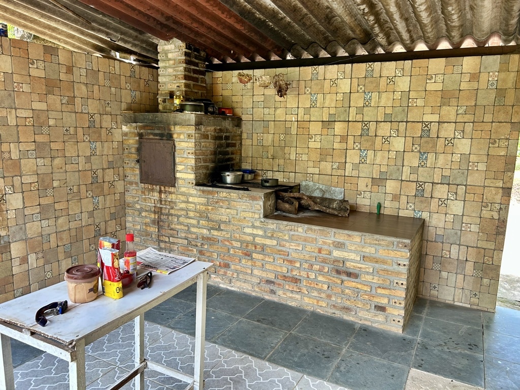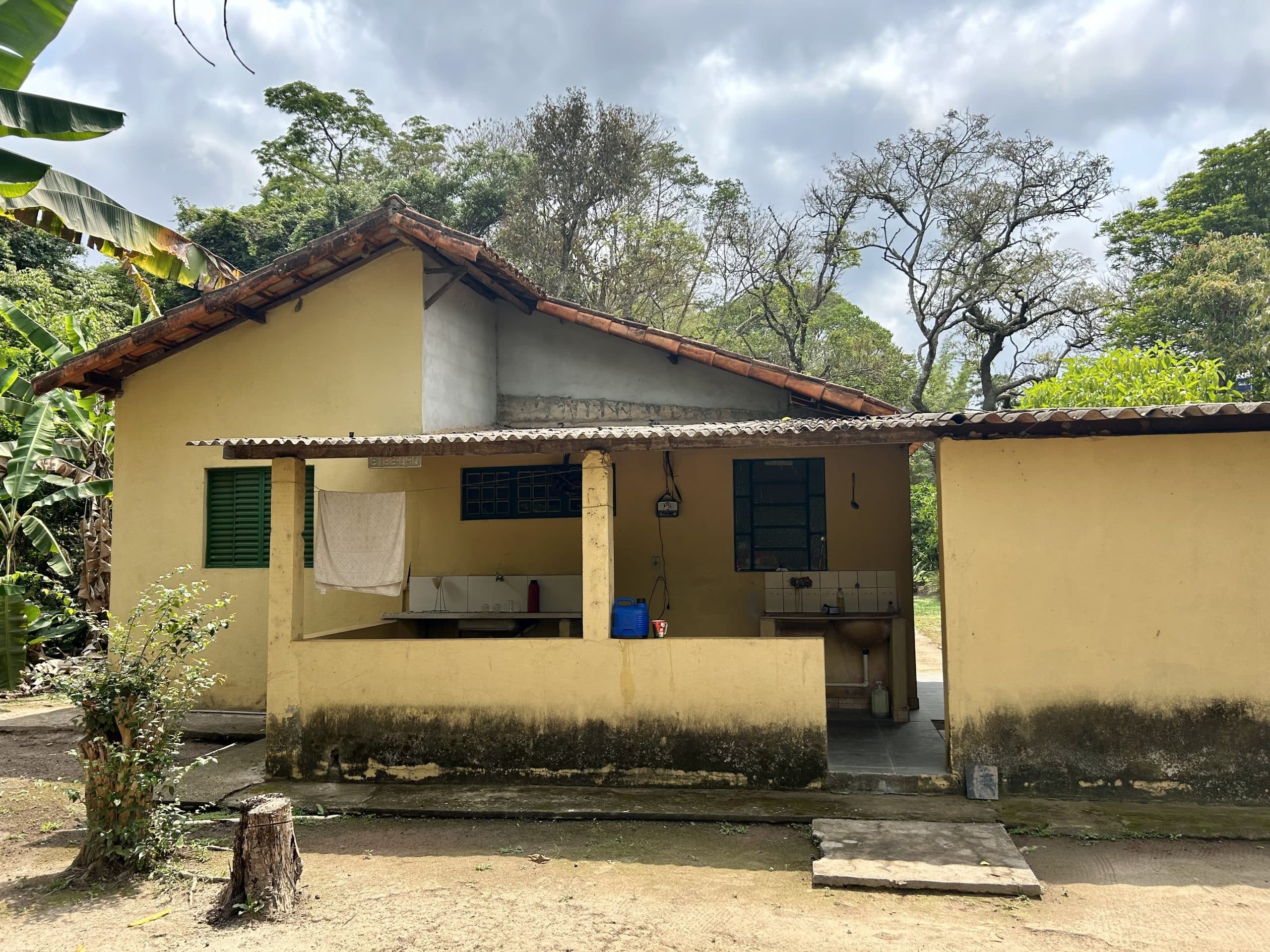 Casa de caseiro contendo 03 quartos (sendo 01 suíte), sala, cozinha, banheiro social e área de serviço, varanda com fogão à lenha.