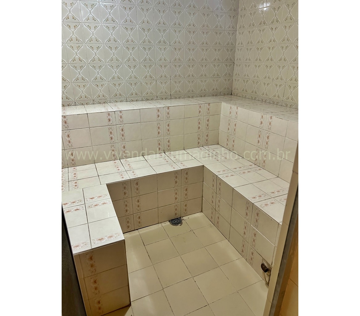 Sauna com lavabo, ducha e ferramentaria.